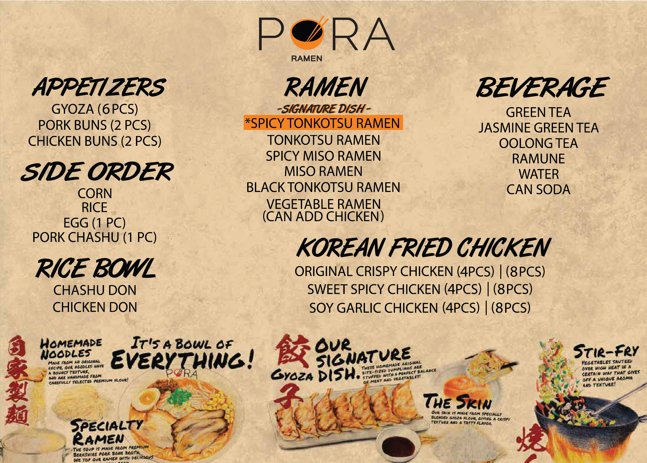 PORA FOODS - MENU