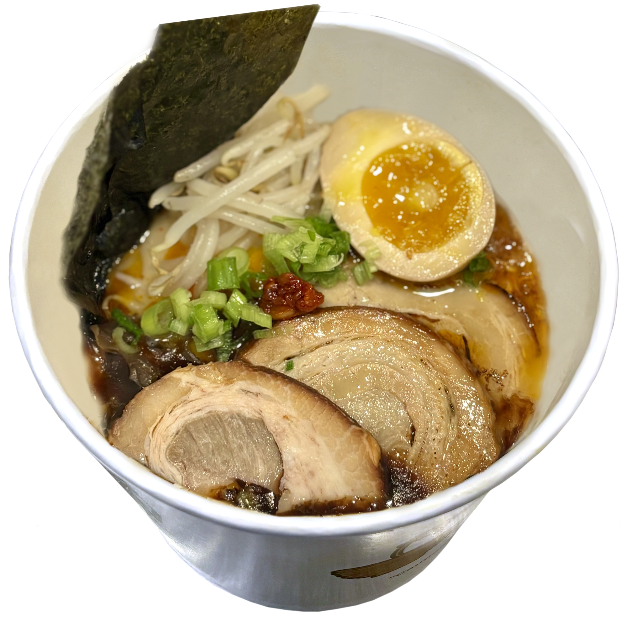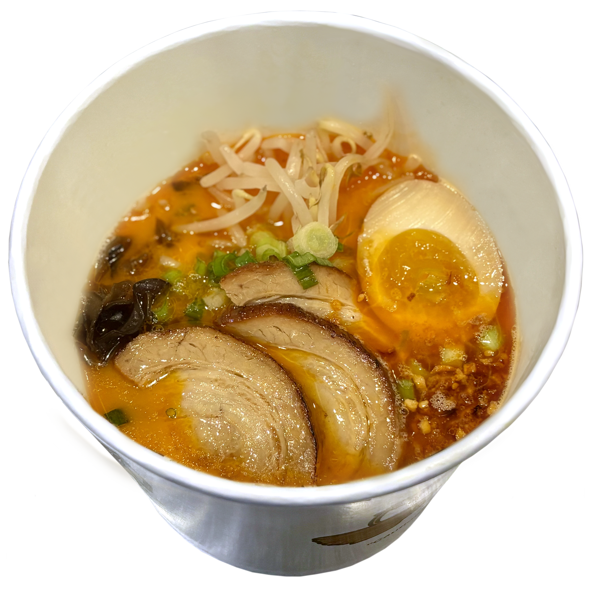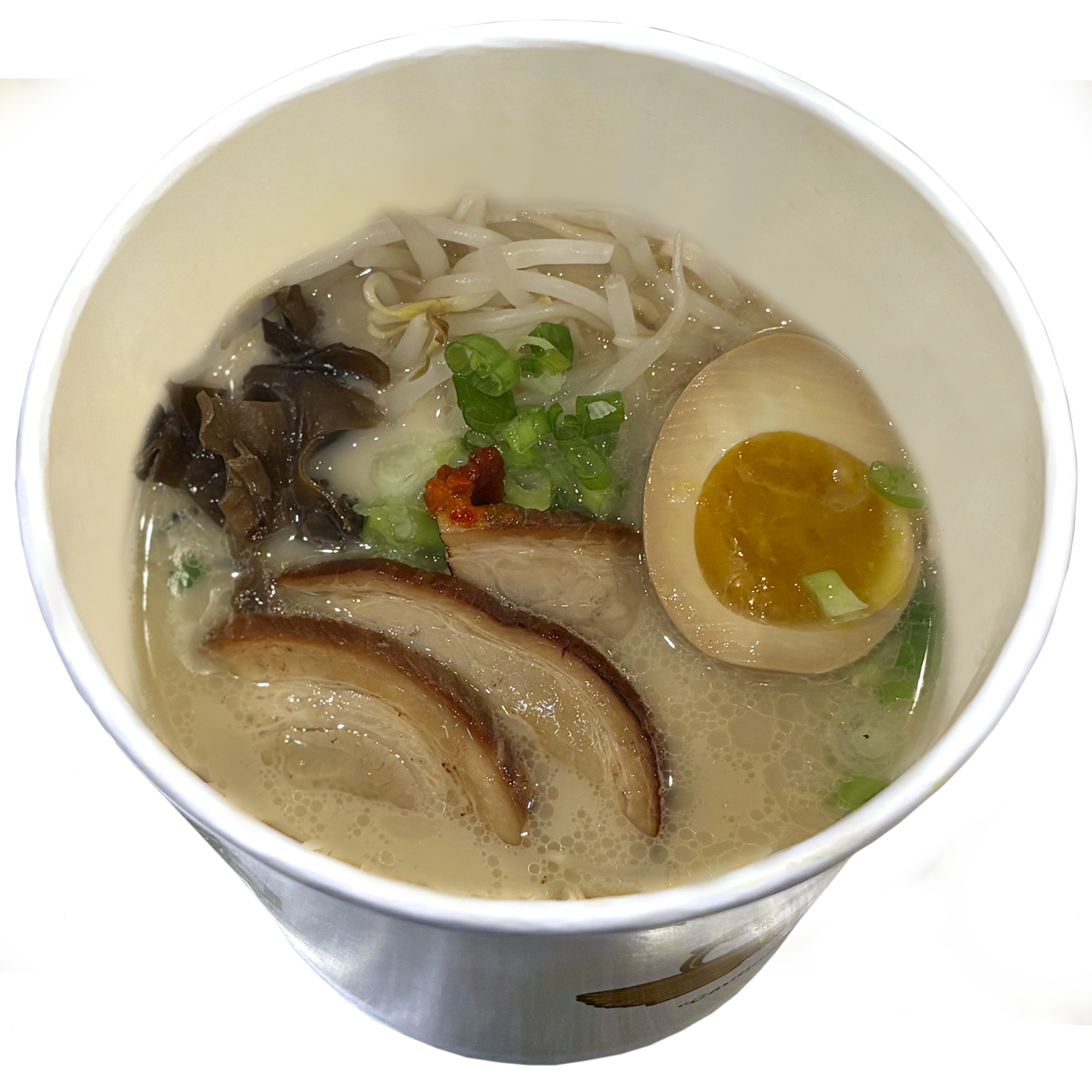 Pork broth | bean sprouts | green onions | mushrooms | boiled egg | noodles | garlic oil | 2-3 slices of pork meat (Chashu)