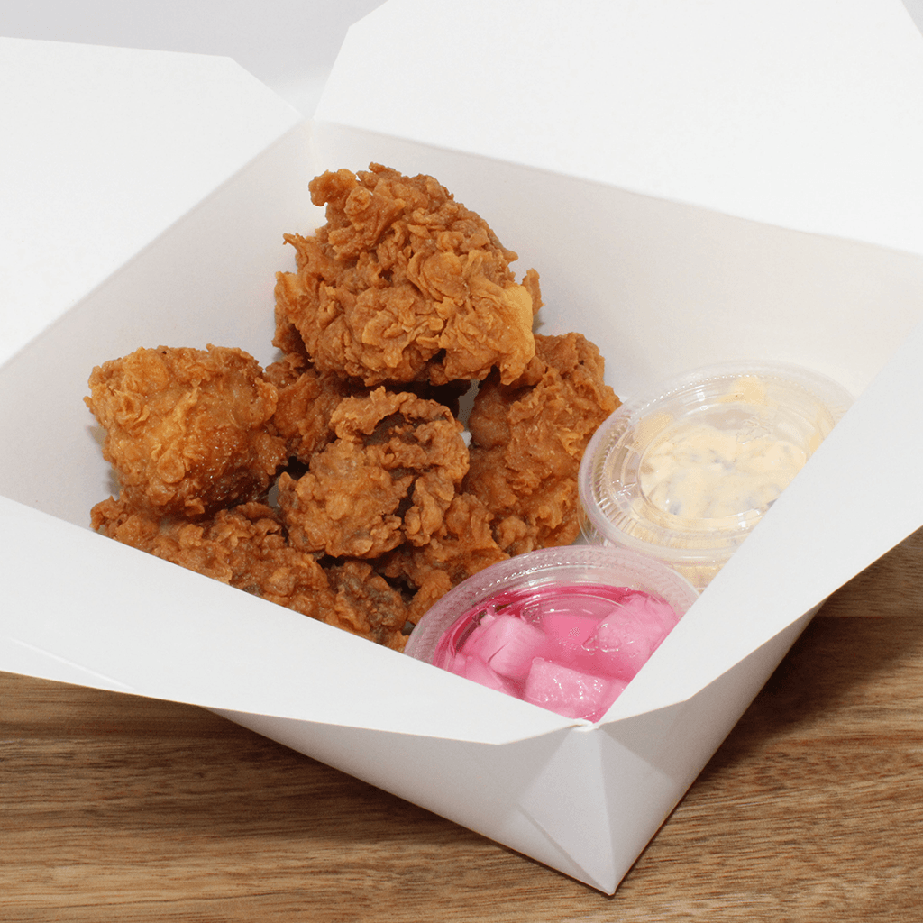 Original Korean Fried chicken with a side of spicy mayo and pickled radish